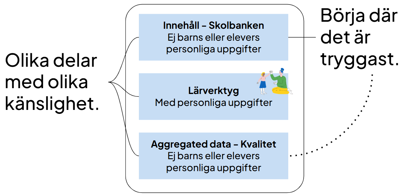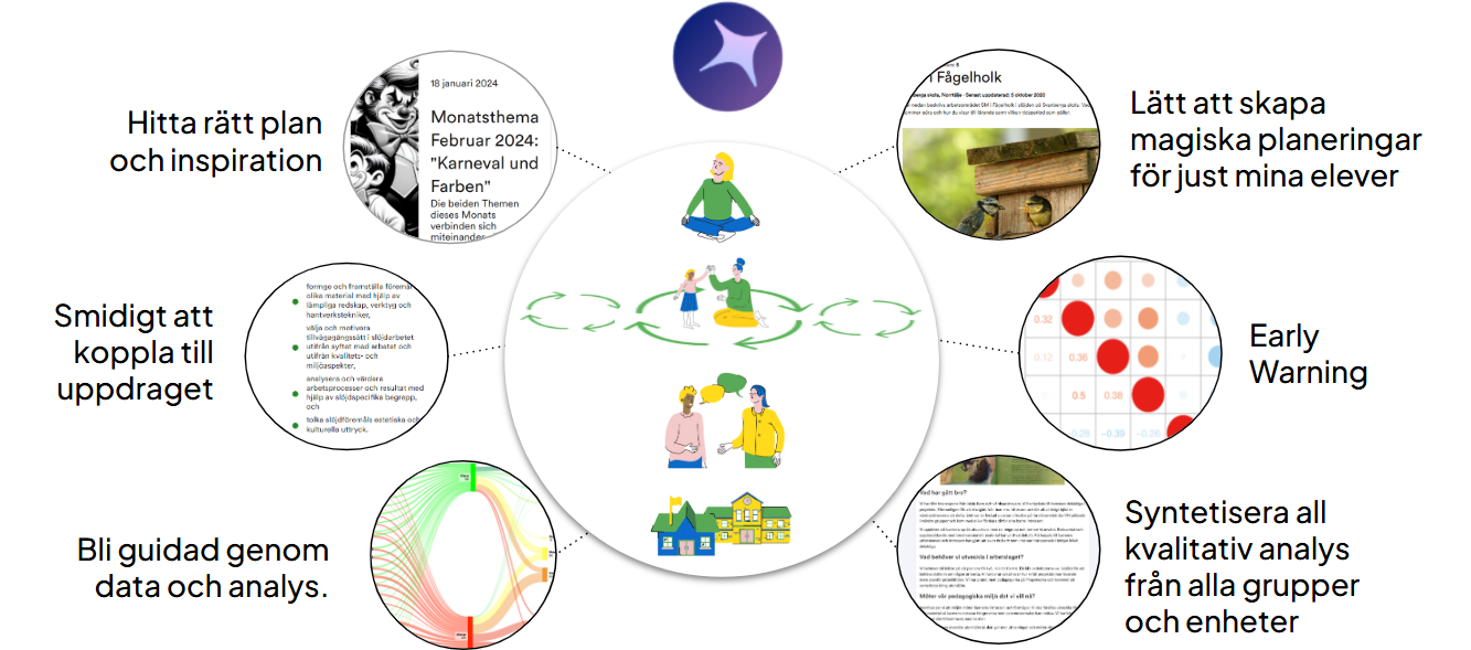 Arbetet med att utveckla användningen av AI sker i samarbete med våra kunder och huvudmän. De hjälper oss att välja ut de sätt att använda AI som kan ge bäst nytta på ett tryggt sätt. Samarbetet sker bland annat i innovationsprojekt som Smart Kvalitet, och inom det nationella initiativet AI Sweden. Genom partnerskapet med AI Sweden får vi del av best practice kring trygg AI-användning tillsammans med ett stort antal kommuner. På så vis är vi aktiva i de diskussioner som sker på nationell nivå om hur man bäst tillämpar kraften i AI för lärande och skola.